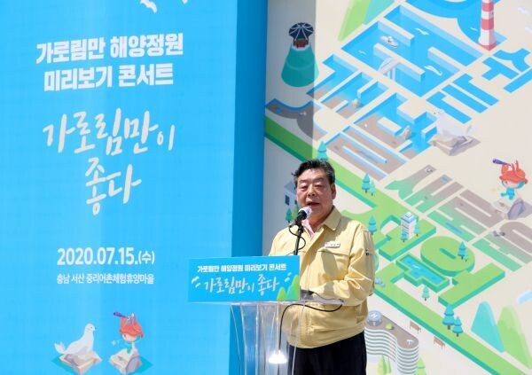 가세로 군수는 “우리의 소중한 가로림만이 해양정원으로 새롭게 태어나게 되는 것을 계기로 바다의 가치와 중요성, 그리고 보전 필요성에 대한 공감대가 전 국민에게 확산되기를 기대한다”고 축사를 시작하며“이미 해외에서는 갯벌의 소중함을 인식하고 지속가능한 개발과 현명한 활용을 통해 에코투어리즘을 실현하고 있다”며 “가로림만의 생물다양성을 지켜가는 가운데 해양환경·문화관광을 연계해 지역경제를 발전시킬 수 있는 지속가능한 성장모델을 만들어 가야한다”고 말했다.
