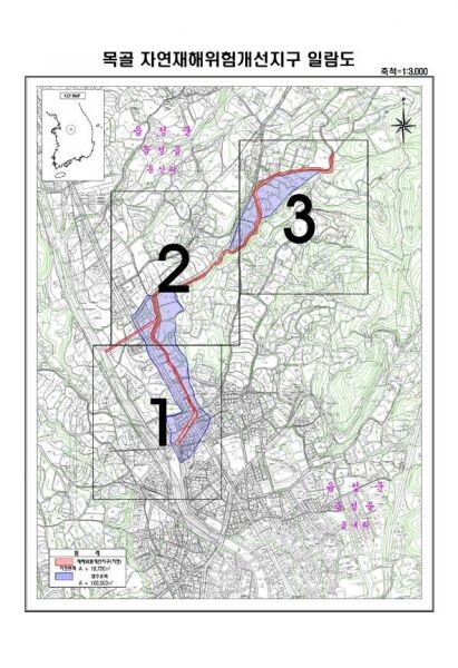 목골지구는 침수위험지구 ‘나’등급으로 면적은 19,720㎡이며 총사업비 190억원을 투자해 2021년부터 2024년까지 소하천 정비 L1.75km, 교량 재가설 15개소 등을 추진할 예정이며 국·도비 등 예산 확보여부에 따라 사업 기간, 사업내용과 규모를 확정할 계획이라고 전했다.