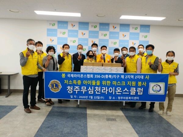 무심천라이온스클럽 김세현 회장은 “코로나19 사태가 지속돼 취약계층 아동들이 겪는 어려움이 큰 상황에서 우리들의 응원에 힘을 내서 어려운 시기를 건강하게 잘 이겨내길 바란다”며 아이들을 향한 각별한 관심과 사랑을 표현했다.