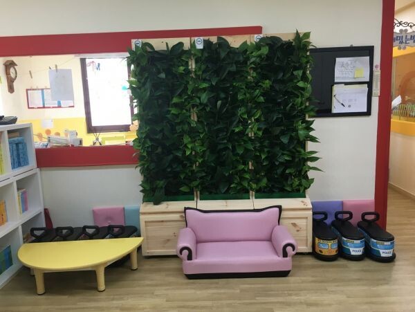 학부모와 어린이집 관계자들의 반가움을 사고 있는 녹색필터는 공기정화 효과가 좋은 식물을 심을 수 있는 재배시설이다.