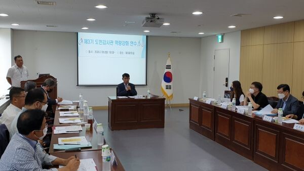[무한뉴스] 충남교육청은 28일 교육청 회의실에서 제3기 도민감사관 15명을 대상으로 역량강화 연수를 개최했다이번 연수는 새로 임기를 시작하는 3기 도민감사관들이 현장 감사에 참여하기 전에 필요한 기본적인 감사 방법과 학교급식분야 그리고 학교운영위원회 운영 분야 등을 중심으로 진행됐다.