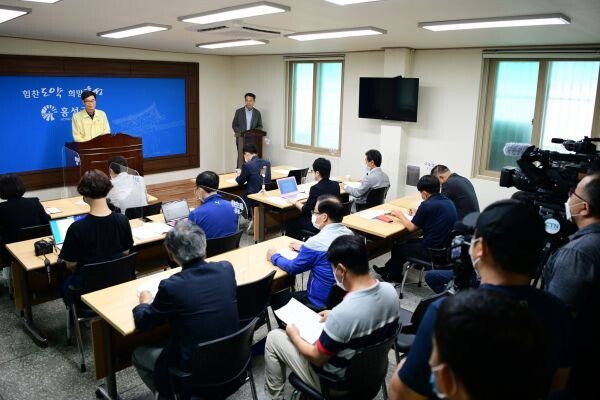 [무한뉴스] 홍성군은 29일 군 행정홍보지원실에서 군정 정례 브리핑을 열고 코로나19대응 추진상황과 하반기 행사계획, 폭염 대책 등을 보고했다.