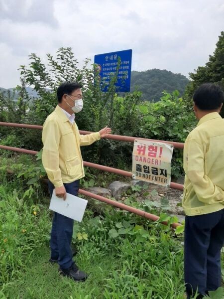 이어 세앙바위 위험도로개선 공사장, 칠갑호 내 급경사지, 중묵리 임도를 방문해 사면붕괴 대책마련과 공사장 가도 통제 등 철저한 사업장 관리를 주문했다.