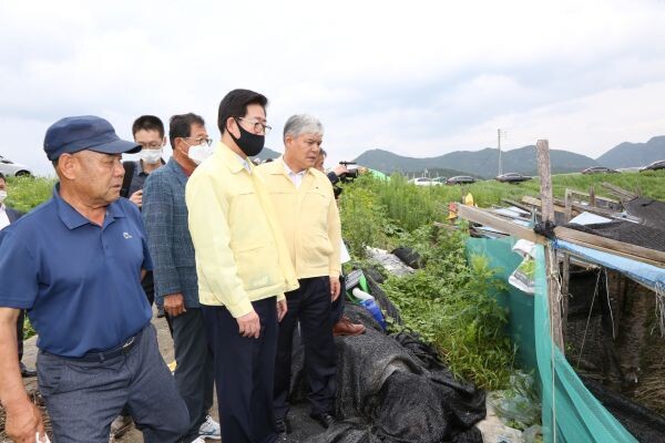 이날 현장 상황을 확인하고 피해 농민 위로 및 피해복구 봉사 중인 금산군자율방재단원 격려 등 신속한 피해복구 방안에 대해 논의했다.