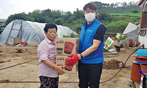 엄정면 등 5개 면 수해복구지원, 라면 등 생필품 전달