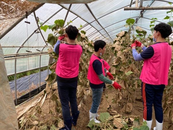 이에 군 공직자 40여명은 2개조로 나눠 지역의 오이농장과 피해가구를 방문해 복구활동을 전개했다.