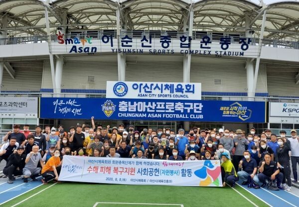 지난 8일 실시한 수해복구 활동에는 아산시체육회 사무국 및 회원종목 단체 회원과 아산시 체육진흥과 직원 등 150여명이 참여했다.