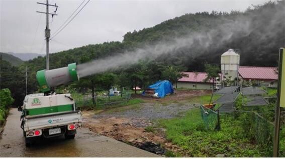 이번 일제소독은 공동방제단 등 소독차량 5대를 총동원해 침수된 축사 및 매몰로 사체가 발생한 지역을 매일 중점 소독하고 특히 아프리카돼지열병 등 야생동물 매개 전염병의 하천을 통한 전파 차단을 위해 계곡, 하천 주변 및 인근 축사를 집중 실시할 예정이다.