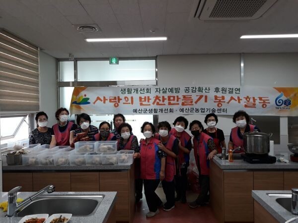 [무한뉴스]한국생활개선회 예산군연합회는 지난 11일 예산군농업기술센터에서 읍면 회장단 12명이 참여한 가운데 관내 독거 및 거동불편 어르신 24명에게 전달할 사랑의 반찬 만들기 봉사활동을 실시했다.