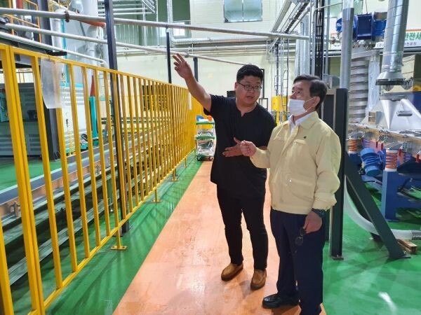 지난 11일 노 군수는 생산라인 고장으로 피해가 발생한 종천면 소재 합성수지 제조업체 일광폴리머에 방문, 현장 상황 확인에 나섰다.