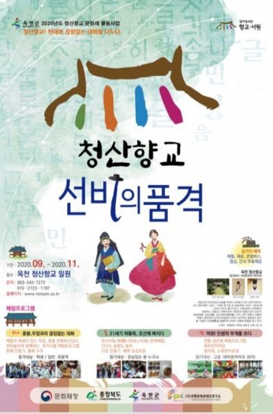 [무한뉴스] 옥천군은 향교서원 문화재활용사업인‘청산향교 현대와 끊임없는 대화를 나누다’ 프로그램에 대한 참여 신청을 14일부터 받는다고 밝혔다.