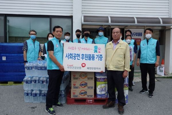[무한뉴스] 국민건강보험공단 제천단양지사‘건이강이봉사단’은2020년8.13. 집중호우로 큰 피해가 발생한 제천시 봉양읍사무소를 방문해 피해주민을 위한 생필품을 전달하고 수해 현장을 찾아 자원봉사활동을 실시했다.