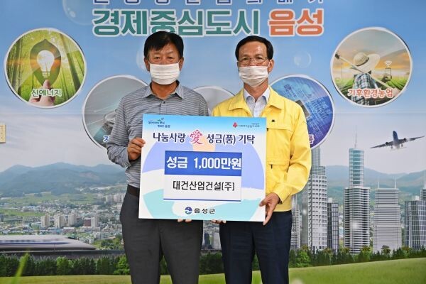 조병옥 음성군수는 “성금을 전달해준 대건산업건설㈜ 김대식 대표, 중앙건설업㈜ 안명진 대표, 대한건설협회 음성군협의회 유병용 회장에게 깊은 감사를 드린다”며 “코로나19와 긴 장마로 생활이 어려워진 군민들에게 여러분들의 따뜻한 마음을 나눌 수 있도록 하겠다”고 말했다.