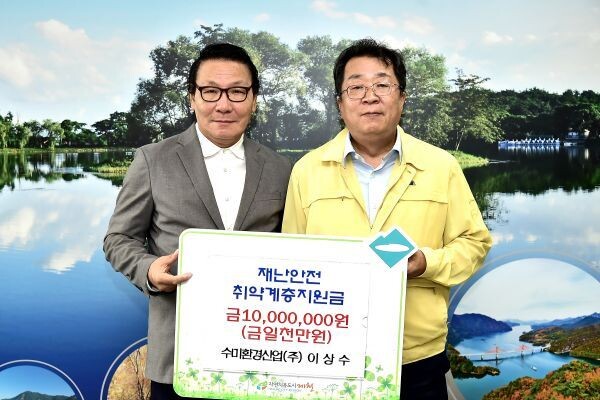 이 대표는 “집중호우로 피해를 입은 수재민들이 하루 빨리 안정된 생활로 돌아갈 수 있도록 조금이나마 도움이 되길 바라고 또한, 수해 폐기물 처리에도 최선의 협조를 하겠다고 ”말했다.