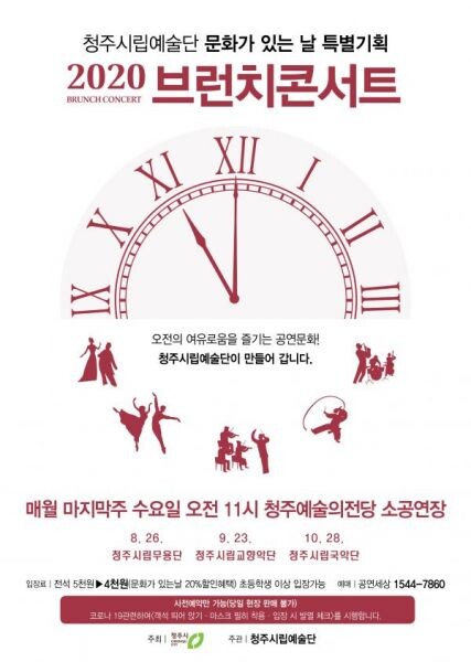 [무한뉴스] 청주시립무용단이 오는 26일 오전 11시 청주예술의전당 소공연장에서 선보이는 문화가 있는 날 특별기획공연 ‘브런치콘서트’가 사전예매를 통해 일찌감치 매진된 가운데 공연을 준비중에 있다.