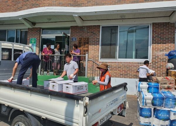 [무한뉴스] 이달 1일부터 집중된 기록적인 폭우로 대규모 가옥이 침수피해를 입은 매포읍에 정성이 담긴 온정의 손길이 이어지며 지난 24일까지 2400만원 상당의 성금과 물품이 전달됐다.