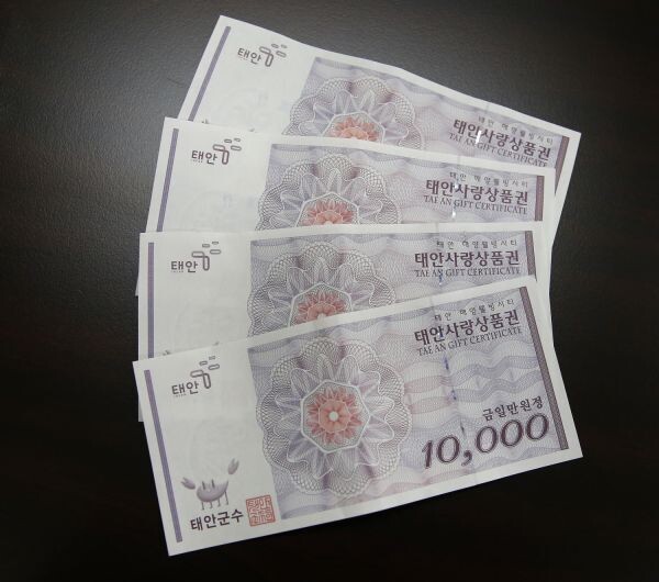 한편 군은 태안사랑상품권의 이용 활성화를 위해 관내 축협·새마을금고·신협 등 17개 금융기관 25개 지점을 판매대행점으로 추가 지정해 다음 달부터 판매·환전업무가 개시되며 올해 10월을 목표로 상품권 통합관리서비스가 적용된 ‘카드형 태안사랑상품권’을 발행할 계획이라고 전했다.