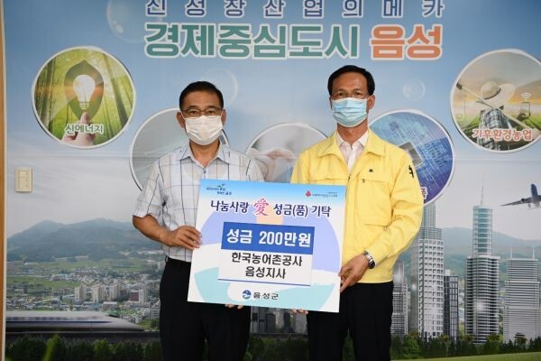 [무한뉴스] 한국농어촌공사 음성지사에서 지난 25일 음성군청을 방문해 관내 어려운 저소득층을 위해 써달라며 성금 200만원을 기부했다.