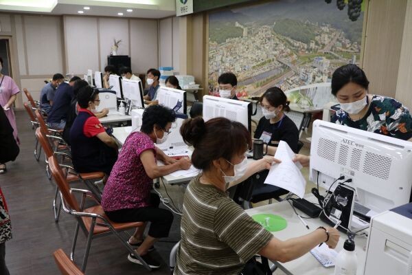 영동군청 홈페이지를 통한 온라인 신청과 각 읍·면사무소를 통해 오프라인 신청을 병행하고 있으며 각 읍면사무소에서는 담당공무원과 안내요원이 거리두기를 준수하면서 군민들의 재난지원금 신청을 돕고 있다.
