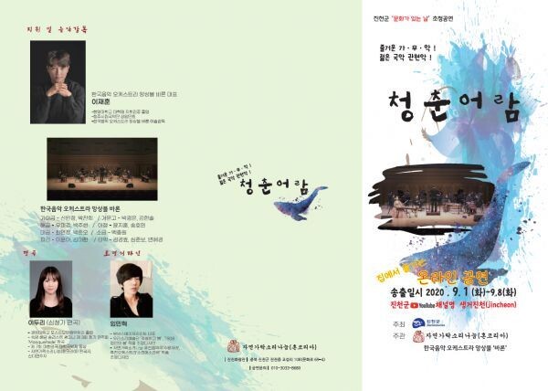 [무한뉴스] 진천군이 2020년 자체기획 국악 공연인 ‘청춘어람’을 오는 9월 1일부터 8일까지 진천군 공식 유튜브채널을 통해 공개한다.