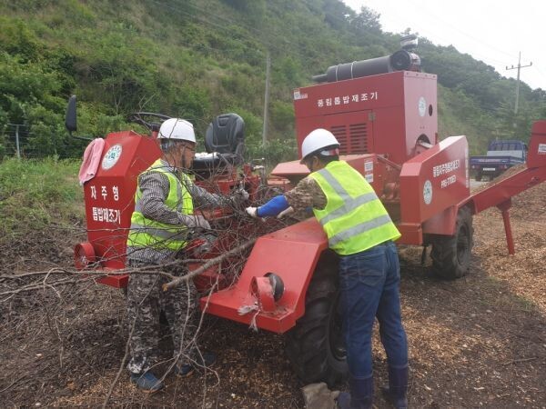 군은 지난 7월 가로수 정리 결과 발생한 부산물을 전량 수집해 8월 하순 우드칩으로 만들었으며 향후 도시공원 및 녹지대 조성 시 활용할 계획이라고 전했다.
