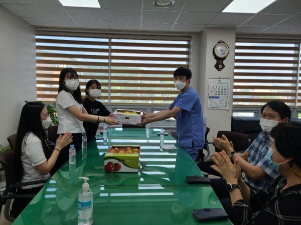[무한뉴스] 부여군 보건소는 지난 8월 28일 소장실에서 부여여고 2학년 3반 학생들이 보내온 보건소 의료진들을 위한 위문품과 감사편지를 전달받았다.