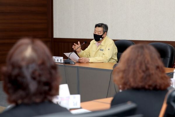 [무한뉴스] 태안군은 지난 9일 군청 중회의실에서 가세로 군수를 비롯한 군 관계자, 코로나19 고위험시설로 분류된 사업장 영업주들이 모인 가운데 긴급 간담회를 가졌다.