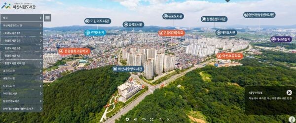 ‘VR도서관 사이버 투어’는 아산시 관내 공공도서관을 VR로 촬영해 핸드폰만 있으면 직접 도서관을 방문하지 않아도 도서관을 방문하는 것과 같은 체험을 할 수 있는 시스템이다.