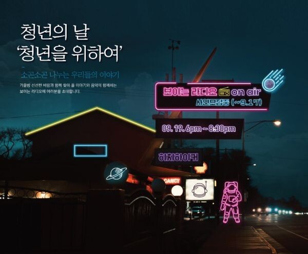 [무한뉴스] 청주시가 제1회 ‘청년의 날’을 맞이해 오는 19일 오후 6시부터 꽃동네 대학교에서 비대면 온라인 행사 ‘청년을 위해 - 보이는 라디오 ON AIR’를 개최한다.