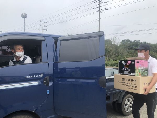 특히 올해는 지역사회 코로나19감염증 전파를 막고자 관계 공무원과 딸기연구회가 협력해 개별 배송과 야외에서 드라이브스루 형태로 전달했다.
