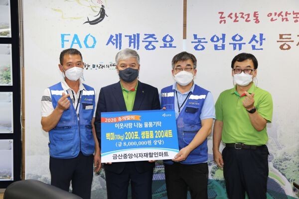 [무한뉴스] 금산 중앙식자재 할인마트는 지난 16일 금산군청을 방문해 추석명절을 맞아 어려운 이웃에게 전달해 달라며 800만원 상당 백미 200포, 생필품 200세트를 금산군에 기탁했다.