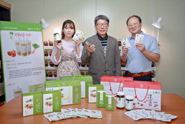 [무한뉴스] 충주시 농업기술센터가 농산가공 기술 상품화 시험연구사업의 성과로 충주사과와 새싹인삼을 혼합한 ‘한뿌리 삼사과’음료를 개발해 본격적인 생산 및 판매에 들어갔다.
