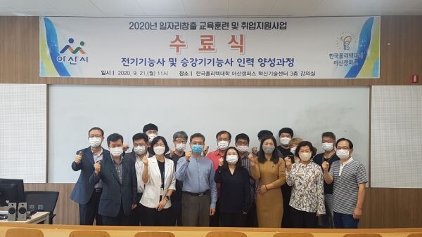 [무한뉴스] 아산시가 지난 21일 한국폴리텍Ⅳ대학 아산캠퍼스 혁신기술센터에서 ‘전기기능사 및 승강기기능사 양성과정’ 수료식을 가졌다.