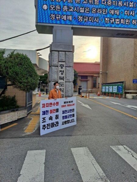 [무한뉴스] 충청북도 자치연수원의 조속한 제천시 이전을 요구하는 1인 릴레이 시위가 이어지고 있다.