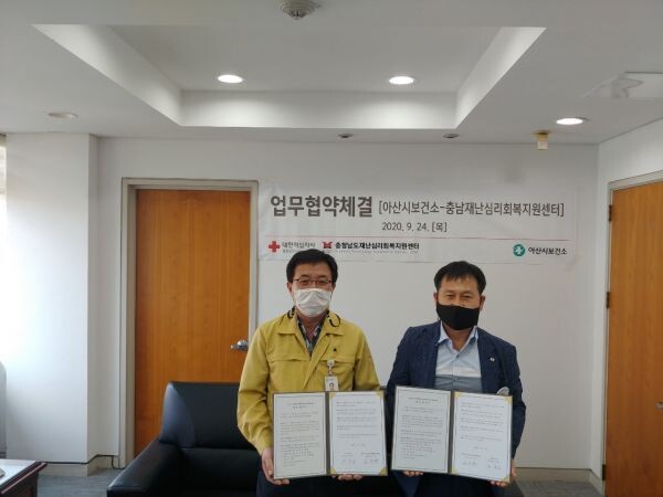 [무한뉴스] 아산시와 충남재난심리회복지원센터이 지난 24일 보건소에서 자연재난, 사회재난 등 피해를 입은 재난 경험자의 심리회복과 조속한 사회복귀를 목적으로 한 업무협약을 체결했다.