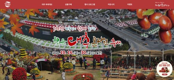 홈페이지는 축제개요, 행사 프로그램, 커뮤니티, 이벤트 및 대추 및 농·특산품 구매 등으로 구성됐으며 스마트폰, 테블릿, PC 등을 이용해 누구나 어디서든 쉽게 축제에 참여할 수 있다.