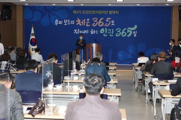 이번 제3기 도민인권지킴이단은 지난 2018년 81명으로 구성한 제2기 도민인권지킴이단의 임기가 끝남에 따라 공모, 시장·군수 추천을 통해 선정한 54명으로 구성했다.