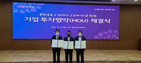 [무한뉴스] 아산시와 ㈜케이엔제이가 12일 충남도청 대회의실에서 반도체부품 생산 공장 신규구축을 위한 투자협약을 체결했다.