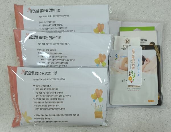 자가격리자가 제한된 공간 안에서 경험할 수 있는 스트레스, 불안, 우울, 무기력 등을 해소하기 위해 제작된 마음안정화 키트 ‘토닥토닥 세트’는 10월부터 지역 내 자가격리자 물품지원 시 함께 지원되고 있다.