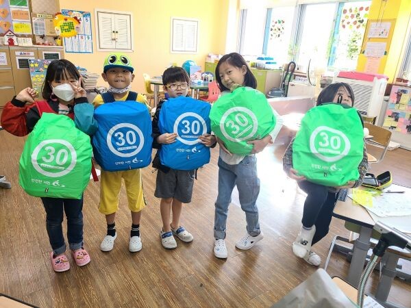안전망토는 방수 기능이 있는 어린이용 가방덮개에 어린이보호구역 차량 제한속도인 ‘30’이란 숫자를 새겨 넣고 빛 반사 기능을 더해 악천후 또는 야간에도 가시성을 높여 교통사고를 예방할 수 있는 제품이다.