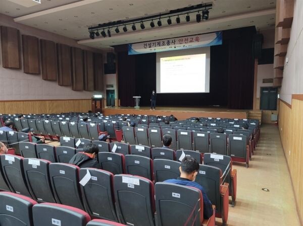 이날 교육은 국토교통부 지정 전문 교육기관 한국안전보건협회에서 진행했으며 관내 건설기계 조종사 면허 소지자 90여명이 참석해 교육을 이수했다.