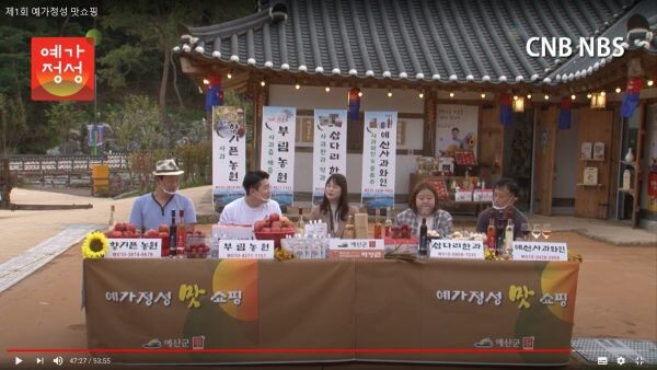 이에 예산사과융복합활성화사업단은 추석 명절 직전인 지난 9월 29일 유튜브 라이브커머스 플랫폼에서 '예가정성 맛 쇼핑' 운영을 시작했으며 예산사과, 사과생즙, 사과한과, 사과와인 등을 소개하고 판매했다.