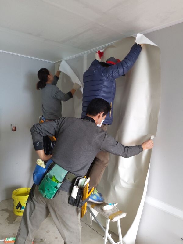 지원단은 23일 지난 8월 용담댐 방류로 수해를 크게 입은 위기 청소년에게 봉사활동으로 도배·장판 작업을 진행했다.