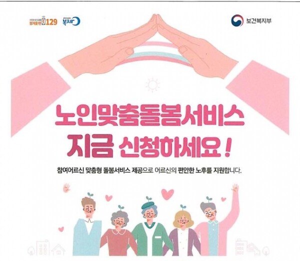 맹영호 노인장애인과장은 “이번 집중 신청기간에 많은 어르신들이 관심을 갖고 맞춤돌봄서비스를 제공받아 편안한 노후를 누릴 수 있기를 기대한다”며 “현장에서 어르신을 정성껏 돌보고 있는 사회복지사와 생활지원사 등 수행 인력의 수고로움에 감사를 드린다”고 말했다.