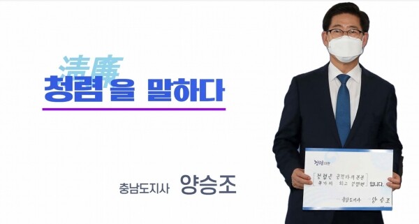 양승조 지사는 지난 7일 첫 방송을 통해 “공직자의 가장 중요한 임무는 어떠한 경우에도 공익을 우선시하는 것”이라며 “업무 추진에 있어 조금의 사익도 꾀하지 않고 철저히 업무에 임해야 한다”고 강조했다.