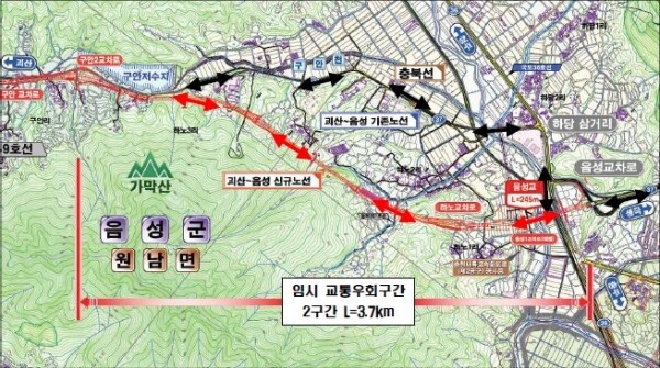 한편 괴산~음성간 37번 국도 확포장사업은 총사업비 1105억 8800만원을 투입해 공사연장 9.7km의 왕복 4차선 도로를 건설하는 것으로 오는 2021년 9월 개통을 목표로 현재 마무리 공사가 진행 중이다.