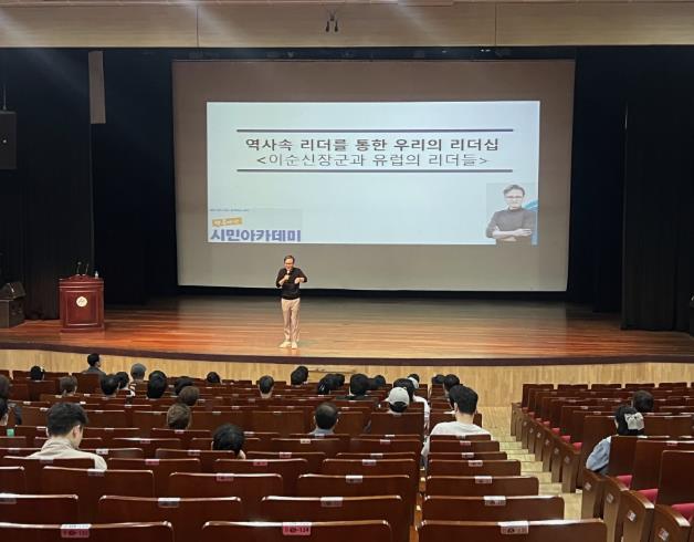 [무한뉴스=정민정 기자] 아산시가 지난 20일 평생학습관 아산아트홀에서 진행한 썬킴 역사스토리텔러의 ‘역사 속 리더를 통한 우리의 리더십(이순신장군과 유럽의 리더들)’ 특강이 성황리에 마무리됐다.