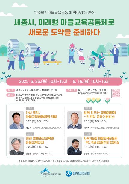[무한뉴스=정민정 기자] 세종특별자치시가 오는 26일부터 미래형 교육생태계 구축을 위한 마을교육공동체 연수를 진행한다.