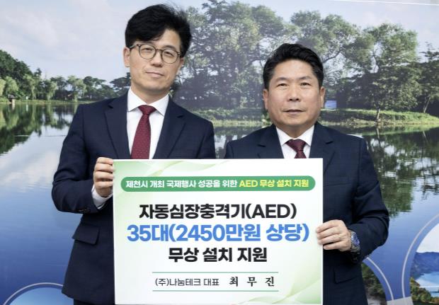 [무한뉴스=정민정 기자] 제천시와 ㈜나눔테크는 지난 28일 2025년 제천시에서 개최되는 4개 국제행사의 성공개최를 위해 35대(총 2,450만 원 상당)의 자동심장충격기(AED) 무상 설치지원을 약속했다고 밝혔다.