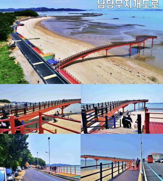 금주중 정식 준공을 앞두고 있는 남당무지개도로는 홍성군이 역점 추진 중인 서부해안 관광벨트 구축사업의 핵심사업 중 하나로, 남당항 해양분수공원에서 어사항까지 이어지는 약 1.3km 길이의 모래사장이 펼쳐진 해안도로이다. 사업 추진 전에는 도로 폭이 좁고 인도가 없어 차량통행과 보행 모두에 불편함이 컸던 구간이었지만 사업 추진을 통해 인도 신설 등으로 안전하고 쾌적한 관광 명소로 거듭났다.